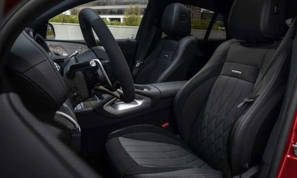 The cabin of the 2024 Mercedes-Benz GLE53 AMG Coupé reflects the brand’s commitment to luxury craftsmanship, comfort and advanced technology. Inside, occupants are greeted by a blend of high-quality materials, AMG-specific details and a meticulously assembled layout. Carbon-fiber or brushed-aluminum trim pieces complement premium leather upholstery, while contrast stitching and embroidered AMG logos further elevate the performance-oriented ambiance.