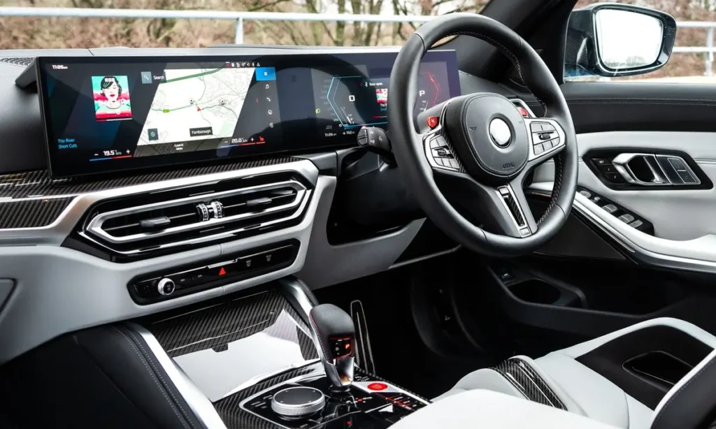 Inside the 2025 BMW M3 Competition Touring, drivers experience a cabin that blends motorsport functionality with premium craftsmanship. The cockpit incorporates BMW’s latest curved display system—integrating a digital instrument cluster and large infotainment touchscreen into one seamless pane directed toward the driver.