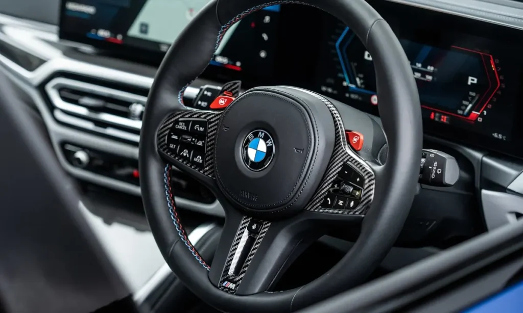 Material quality reflects BMW’s modern luxury ethos, with Merino leather, Alcantara, open-pore carbon fiber and anthracite trims available. The flat-bottomed M steering wheel features updated paddle shifters, tactile stitching and additional M-specific controls for rapid access to performance configurations.