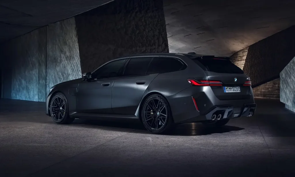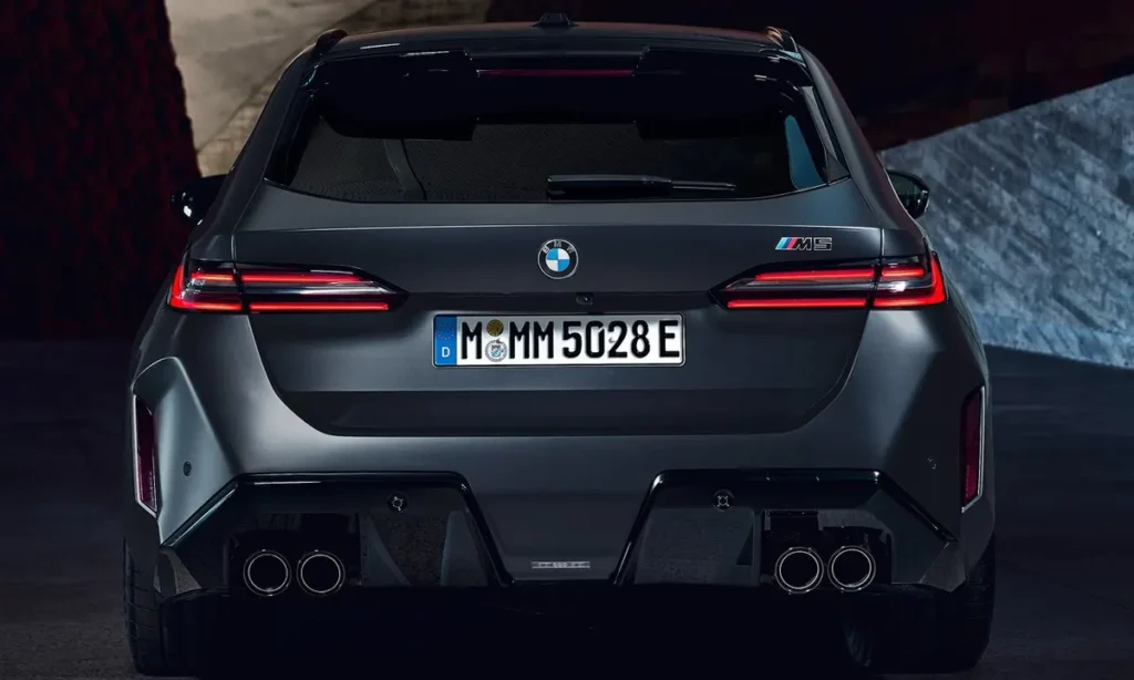 At the rear, the M5 Touring integrates a sculpted diffuser, quad exhaust outlets and a roof spoiler that enhances downforce. The LED taillight signature is sleek and modern, contributing to a refined yet powerful rear view. The design as a whole is both functional and emotional, ensuring the M5 Touring makes a bold impression whether parked or in motion.