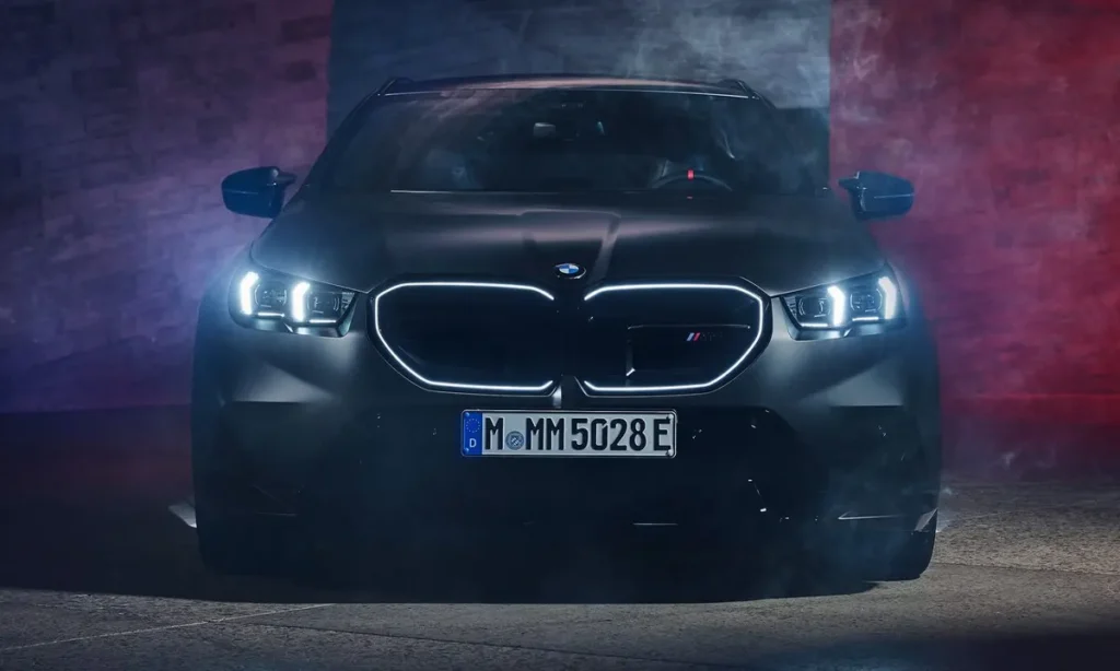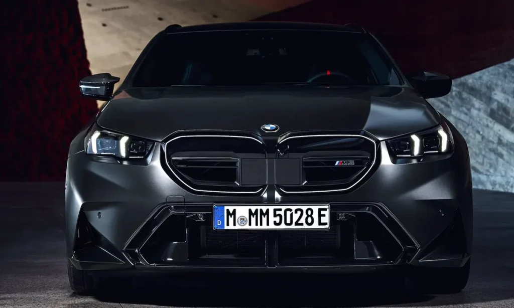 The exterior of the 2025 M5 Touring reflects BMW’s modern design philosophy with a strong emphasis on aerodynamic efficiency and muscular proportions. The car sits lower, wider and more defined than the standard 5 Series Touring, instantly communicating its performance intent. The front fascia incorporates a bold kidney grille with a more structured, horizontal orientation and active aerodynamic shutters that adjust based on driving conditions.