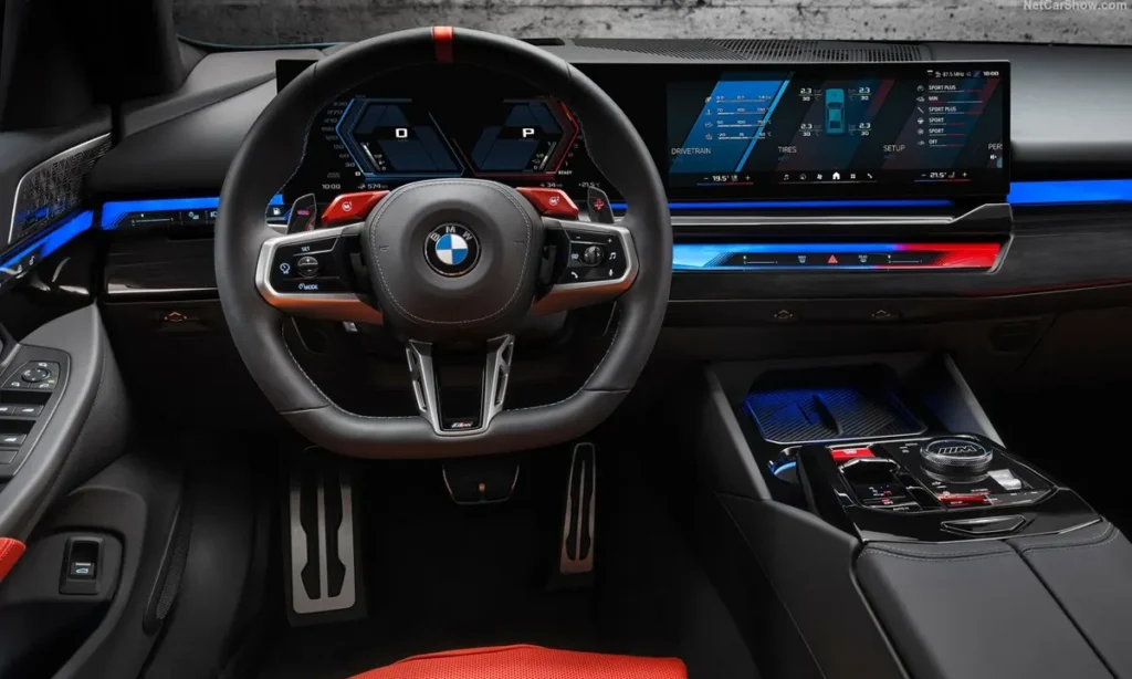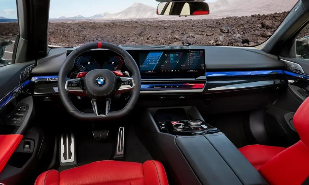Inside, the 2025 BMW M5 Touring delivers a sophisticated cabin designed for both performance and everyday comfort. The interior blends modern digital interfaces with BMW’s signature craftsmanship, offering a premium atmosphere that complements the car’s performance character.