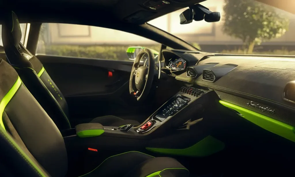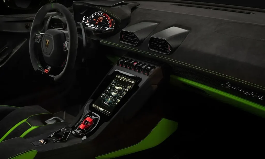 The digital instrument cluster provides performance telemetry, driving mode information and real-time dynamics updates. Lamborghini’s HMI (Human Machine Interface) enhances convenience with smartphone integration, navigation systems and high-resolution displays. The infotainment system supports advanced connectivity without compromising the minimalist driver-focused environment.