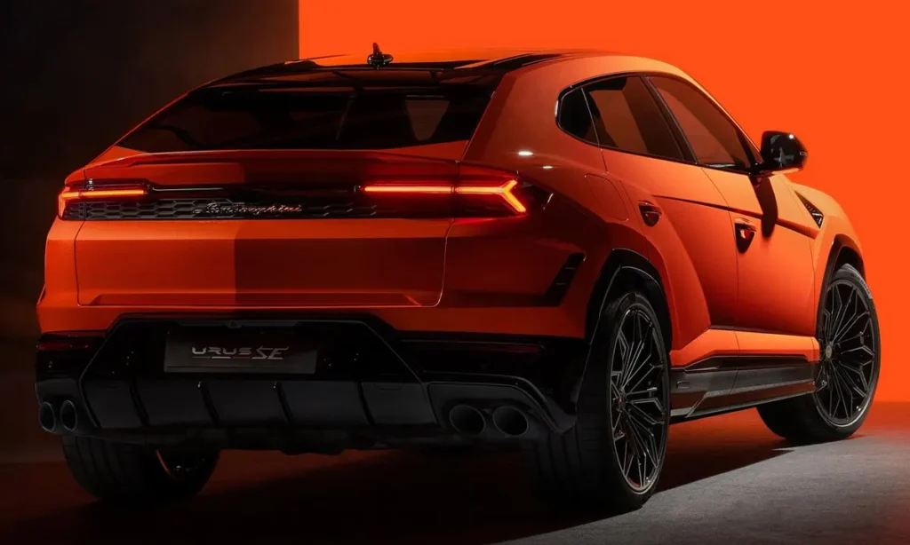 The rear of the Urus SE features a redesigned diffuser, slimmer taillamps reflecting Lamborghini’s Y-shaped signature and a reshaped tailgate that enhances aerodynamic cleanliness. Quad exhaust outlets remain, signaling the vehicle’s performance intent while blending combustion energy with electrified power. The active rear spoiler adjusts automatically according to driving mode, speed and traction requirements, helping stabilize the SUV during aggressive maneuvers.