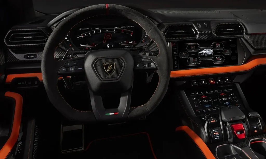 A revised version of Lamborghini’s Active Torque Vectoring system enables more aggressive power delivery to individual wheels during cornering, creating a dynamic, rear-biased handling sensation. Four-wheel steering further enhances agility at low speeds and stability during high-speed transitions. These systems work together to create a driving experience that remains unmistakably Lamborghini despite the vehicle’s substantial size.