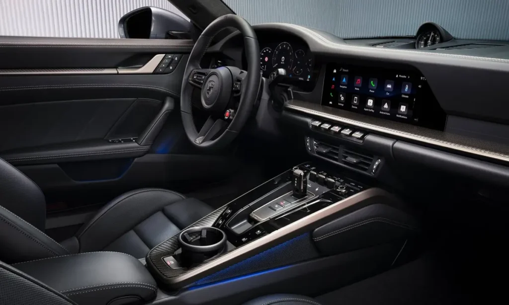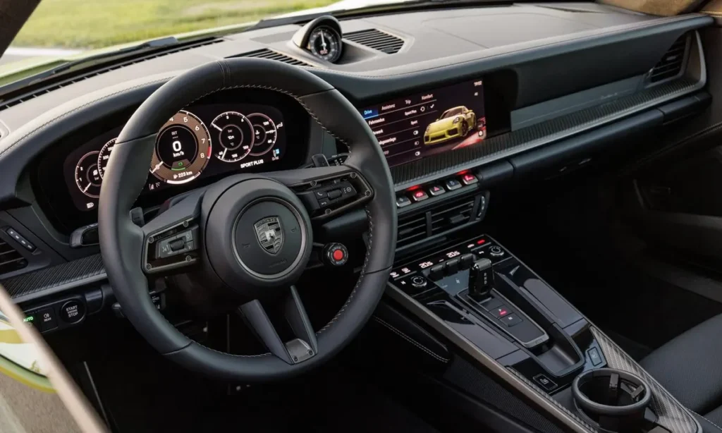 The central theme is simplicity and control. The 12.6-inch curved digital cluster wraps around the steering wheel, displaying everything from boost pressure to lap times. Yet, Porsche retains its signature analog tachometer front and center — a reminder of its racing DNA.