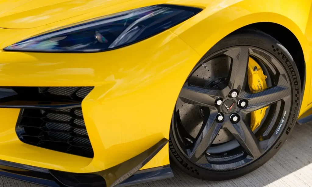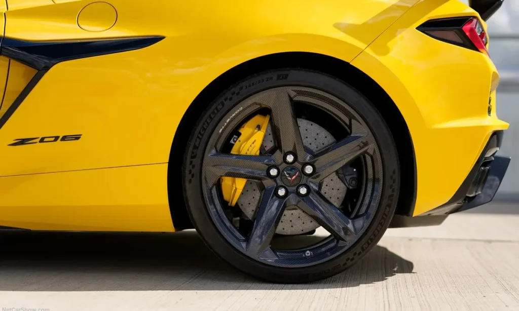 The optional Z07 performance package further enhances the Z06’s capabilities. This package includes carbon fiber aerodynamic components, Michelin Pilot Sport Cup 2 R tires, and carbon ceramic brakes designed to withstand extreme track conditions. These upgrades significantly increase downforce and braking performance, making the Z06 one of the most track-capable Corvettes ever produced.