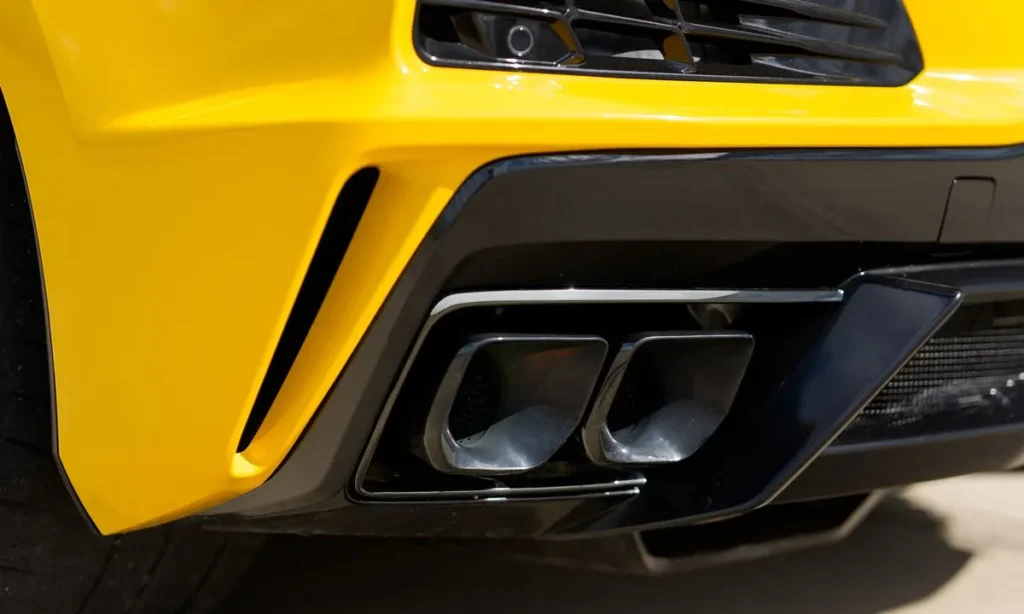 At the rear, the Z06 showcases an advanced aerodynamic package inspired by Corvette Racing’s endurance racing program. A large rear diffuser helps manage airflow beneath the vehicle, increasing downforce and stability at high speeds. Optional aerodynamic packages include a prominent rear wing that further enhances track performance.