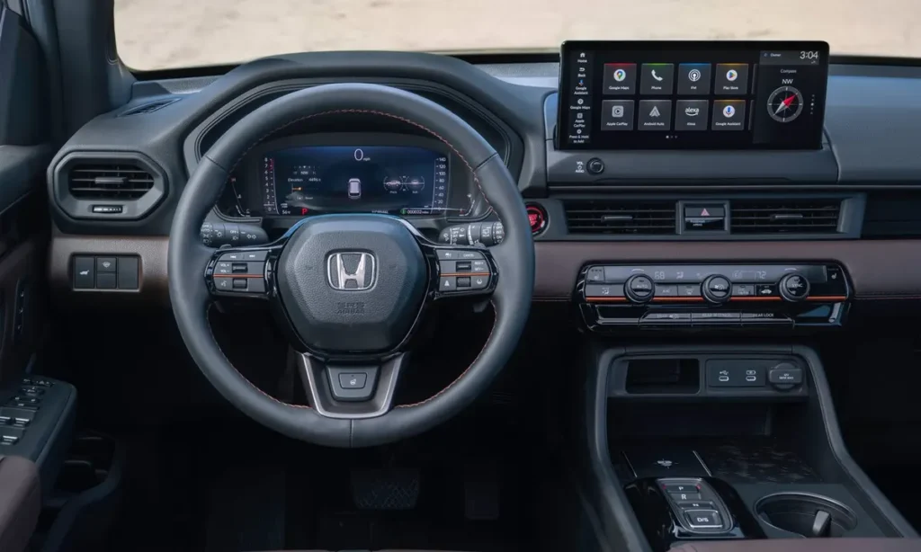 Central to the Pilot’s cabin modernization is a new high-definition touchscreen infotainment system offering faster response times, improved graphics and a simplified user interface. The system integrates wireless Apple CarPlay, wireless Android Auto, refined Bluetooth connectivity and an updated navigation platform. The digital instrument cluster provides customizable display themes, offering real-time driving data, advanced safety alerts and hybrid system information where applicable.