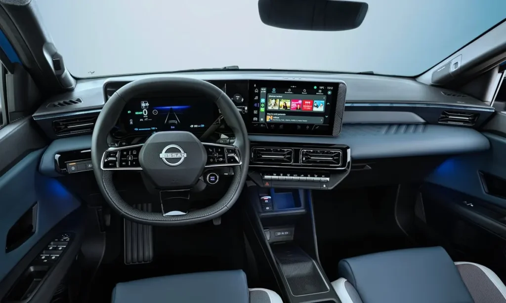 Inside, the Micra EV adopts a clean, tech-forward layout without losing sight of affordability. A dual-screen configuration — digital instrument cluster and central infotainment — lends the cabin a modern feel. Physical controls remain for key functions, avoiding the touchscreen overload increasingly common in small EVs.