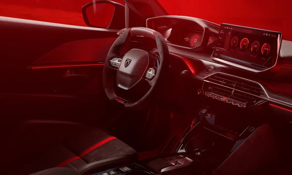 Inside the cabin, the 2026 Peugeot e-208 GTi combines modern technology with sporty design elements. The interior reflects Peugeot’s innovative i-Cockpit philosophy, which places the digital instrument cluster above a compact steering wheel to improve visibility and ergonomics.