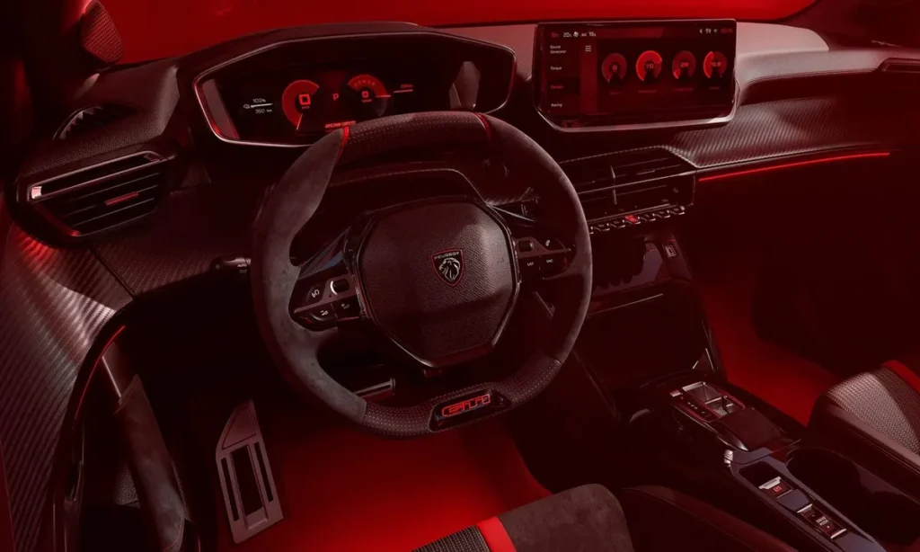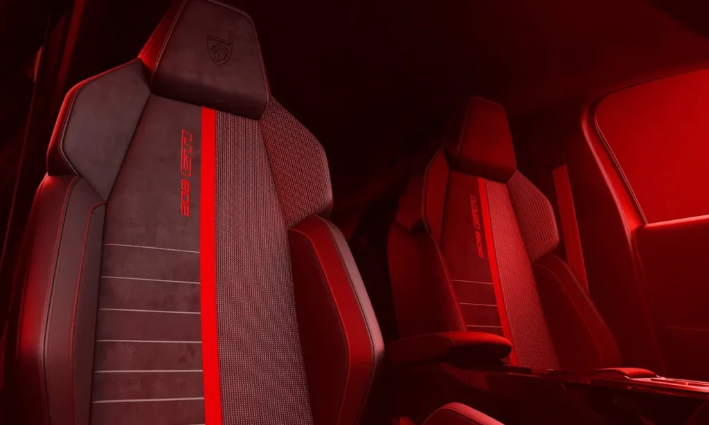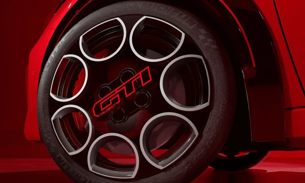 Red GTi accents appear throughout the exterior design, including subtle trim details and brake calipers that pay homage to Peugeot’s historic hot hatch models. These touches provide a visual connection to the brand’s performance heritage.