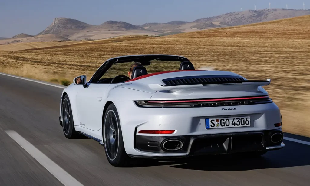 The Turbo S retains its reputation as a performance benchmark by delivering blistering acceleration. The 0–100 km/h sprint takes less than 2.6 seconds—astonishing for a convertible—and the car continues to surge effortlessly toward a top speed approaching 330 km/h, depending on configuration.