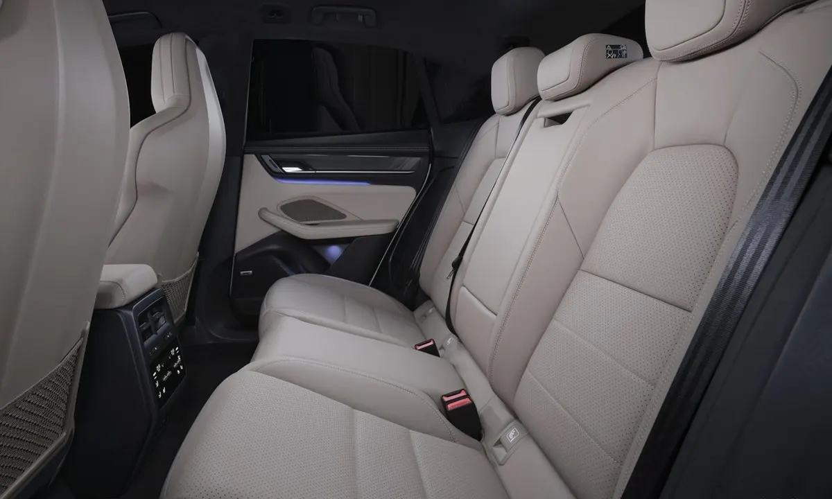 At the rear, the light bar connecting the two tail lamp clusters — a design element that has become a signature of Porsche’s current design direction across multiple models — receives revised internal graphics that distinguish the facelifted car from its predecessor at a glance while maintaining the visual continuity with the broader Porsche range that the connected light bar architecture provides. New wheel designs across the range, ranging from 19 to 21 inches depending on specification level, provide additional visual differentiation between the facelifted model and the outgoing car while offering aerodynamic efficiency improvements on the variants where drag reduction contributes meaningfully to electric range figures.
