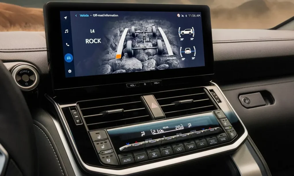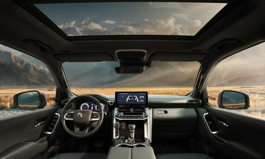 Inside the 2026 Toyota Land Cruiser 300 Hybrid, the cabin combines rugged durability with modern luxury. Toyota has designed the interior to provide comfort and advanced technology while maintaining the practicality required for adventure travel.
