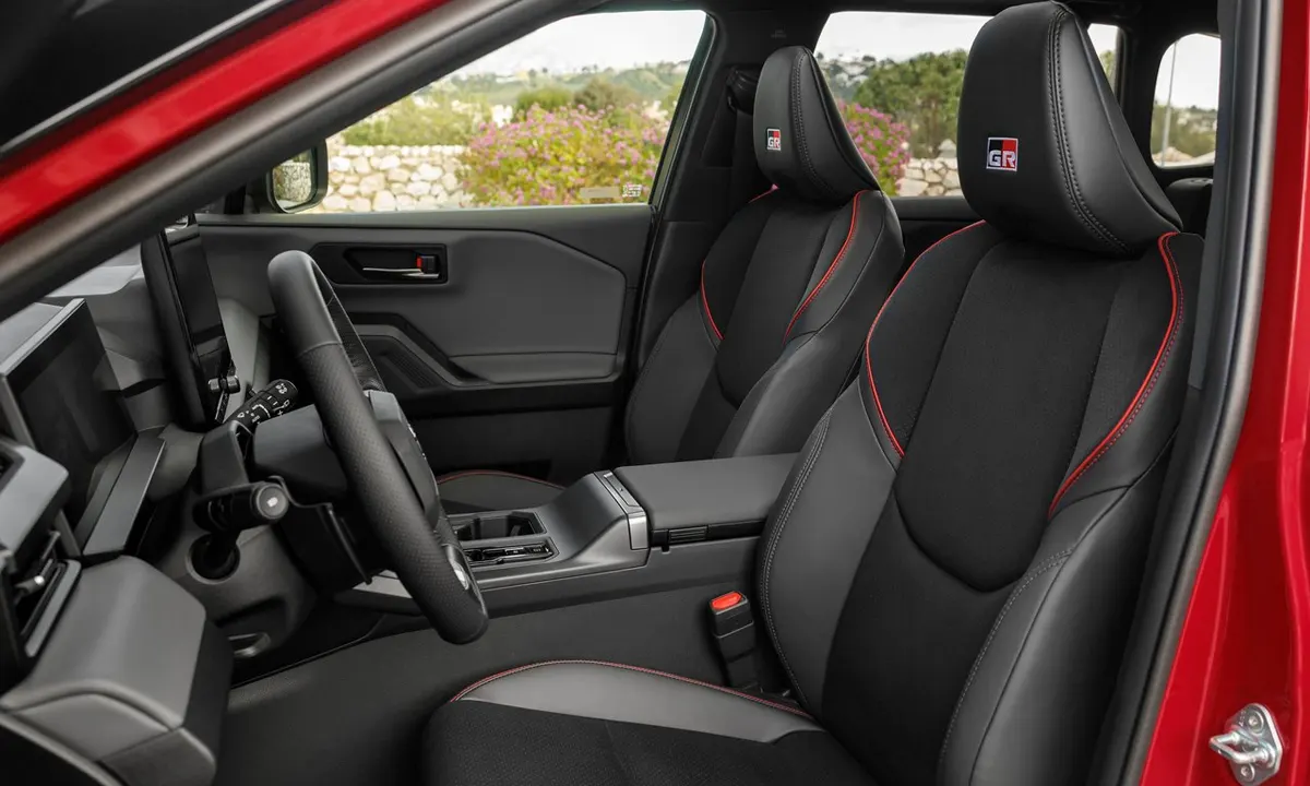 The GR Sport-specific front seats — whose lateral bolstering is increased relative to the standard RAV4’s seats, whose GR Sport embroidered headrest badges provide the visual identification and whose sport fabric or leather upholstery options include the exclusive red accent stitching that the GR Sport colour scheme employs throughout — provide the physical support that the GR Sport’s more dynamic driving character rewards during cornering without the extreme sculpting that makes genuinely track-focused seating uncomfortable for daily use.