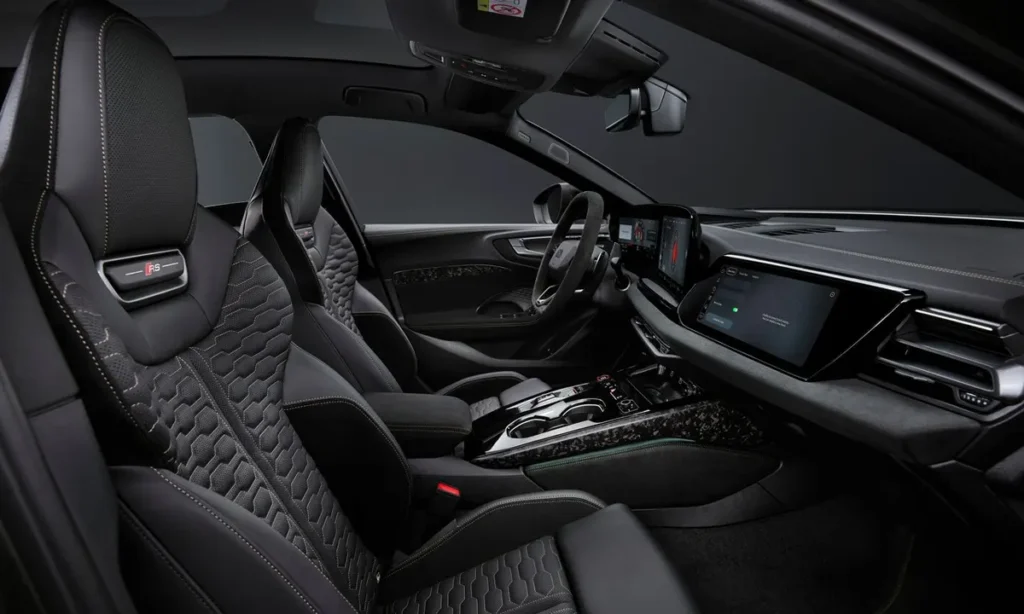 The seats are upholstered in premium leather and Alcantara, providing excellent support during spirited driving while maintaining comfort during long journeys. RS-specific stitching patterns and embossed logos reinforce the vehicle’s performance identity.