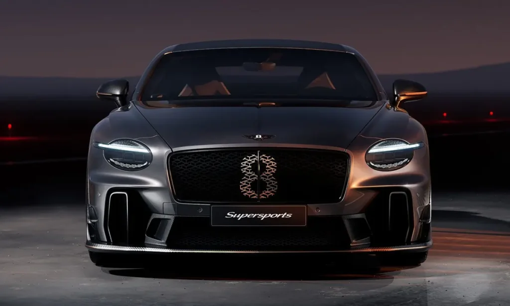 At the front, the car receives a new interpretation of Bentley’s matrix grille, finished in darkened titanium and flanked by larger air intakes for cooling the hybrid system and high-output combustion engine. The headlights adopt a more angular design, incorporating Bentley’s signature crystal-cut aesthetic with modernized LED precision. A deeper, carbon-fiber front splitter helps channel airflow beneath the car to reduce lift and improve aerodynamic stability during high-speed touring.