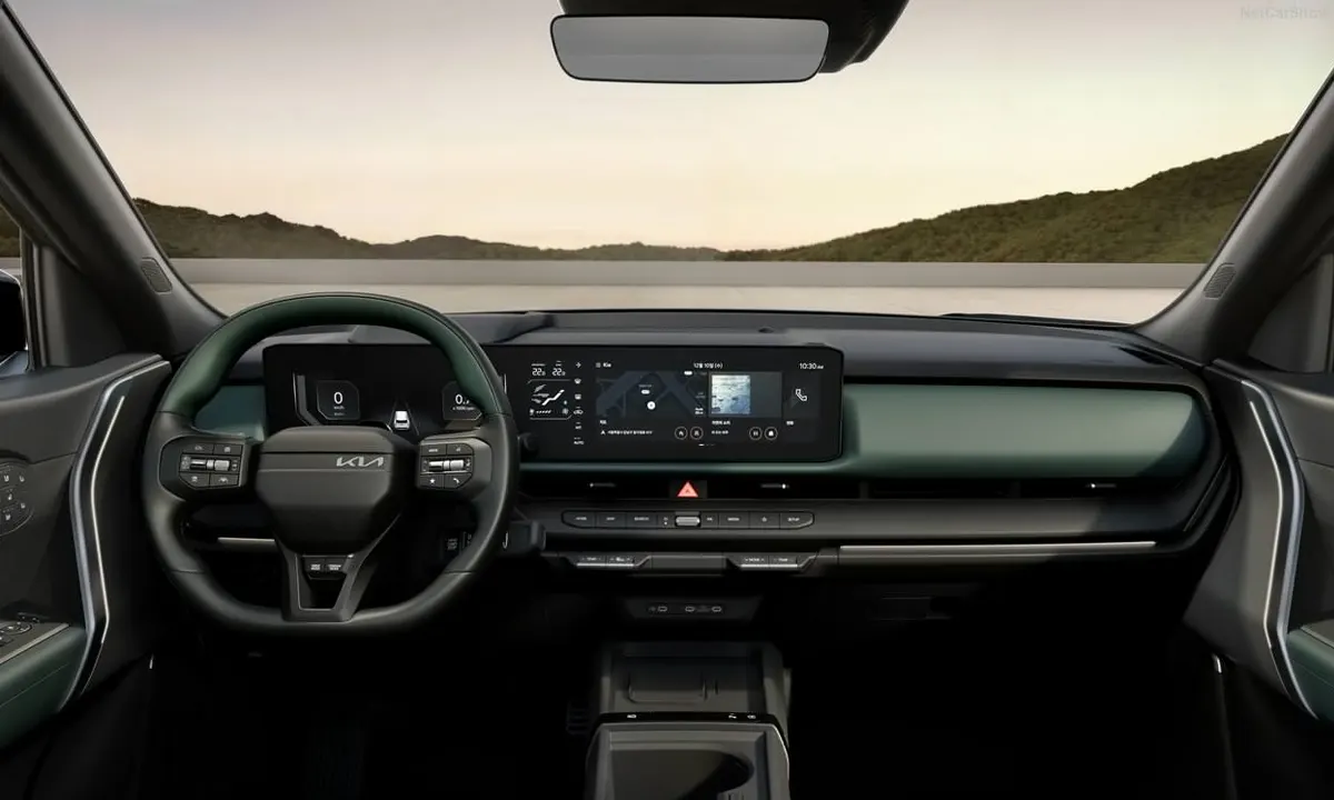 The interior architecture draws aesthetic influence from both the Telluride and the EV9 — a squared-off steering wheel, an open center console design, and horizontal dashboard lines that visually widen the cabin and establish its connection to Kia’s broader premium design language. The Hybrid and higher-specification trims adopt a stalk-mounted gear selector inherited from the EV9, freeing the center console entirely for storage and creating an open, airy environment that reinforces the cabin’s spatial generosity. The X-Line trim brings an exclusive monotone black interior treatment with Telluride-inspired mesh headrests and standard four-way lumbar support — details that cross the conventional boundary between an entry-level SUV’s interior appointments and what buyers would previously have expected to pay considerably more to experience.