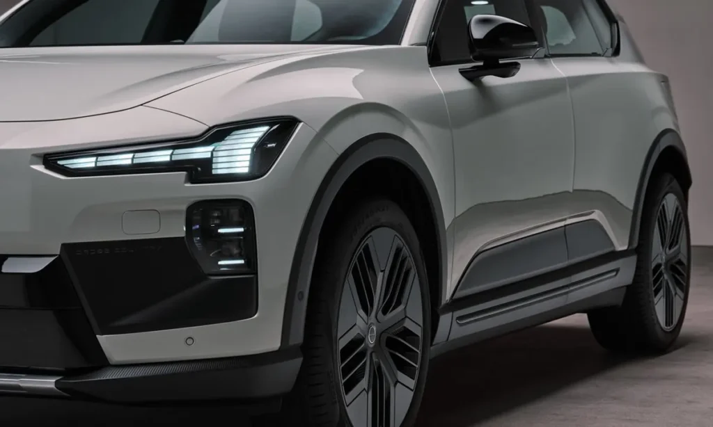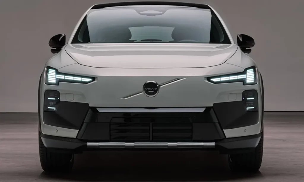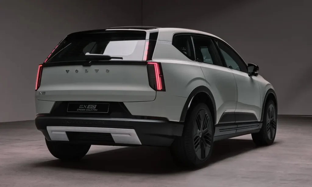 At the front, the EX60 Cross Country features Volvo’s distinctive closed grille design, which is typical of modern electric vehicles. Because electric powertrains require less cooling than traditional internal combustion engines, the grille can be replaced by a smooth aerodynamic panel. This design improves airflow and contributes to the vehicle’s overall efficiency.
