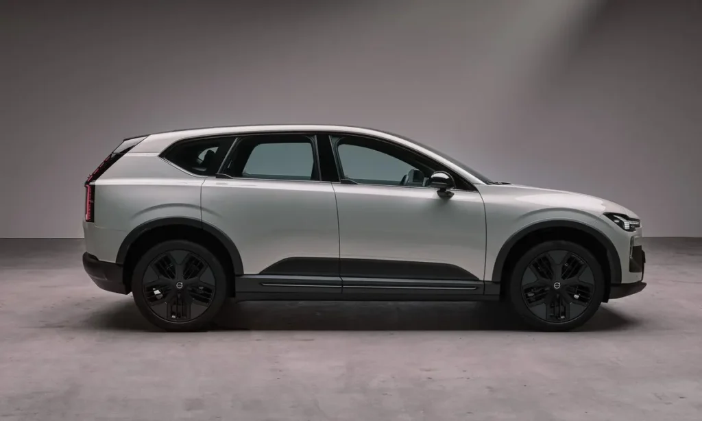 From the side, the EX60 Cross Country reveals a slightly elevated ride height compared to the standard EX60. This increased ground clearance allows the SUV to navigate rough terrain more effectively. Protective cladding along the wheel arches and lower body panels provides additional durability while reinforcing the vehicle’s adventurous character.