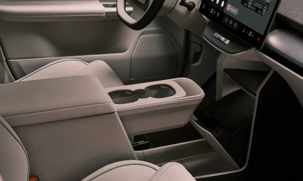 Rear passengers benefit from generous legroom thanks to the flat floor made possible by the electric platform. A panoramic glass roof enhances the sense of openness within the cabin by allowing natural light to fill the interior.