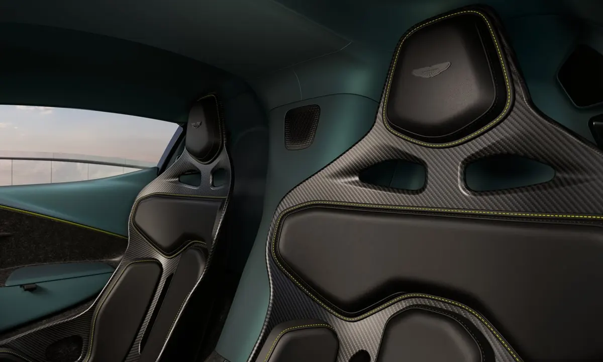 The Valhalla’s interior is the product of a design philosophy that prioritises driver engagement and clarity of information above luxury conventions — a cabin of genuine Le Mans prototype influence that makes no apology for the reclined seating position, the narrow interior dimensions and the functional rather than decorative orientation of every surface and control. The low, reclined seating position that immediately strikes every journalist who has described their first experience of the car contributes directly to the car’s aerodynamic architecture — lowering the roofline to reduce frontal area and improve aerodynamic efficiency in a manner that the comfort-led seating position of a conventional supercar would prevent. Despite this functional intent, the cabin has been designed with sufficient material quality — available in a range of colour combinations that extend from Ultramarine Black with Aston Martin F1 Green accents to the striking Andromeda Red Chromaflair with Cyber Magenta accents — to satisfy the luxury expectations of buyers investing one million dollars in their purchase.