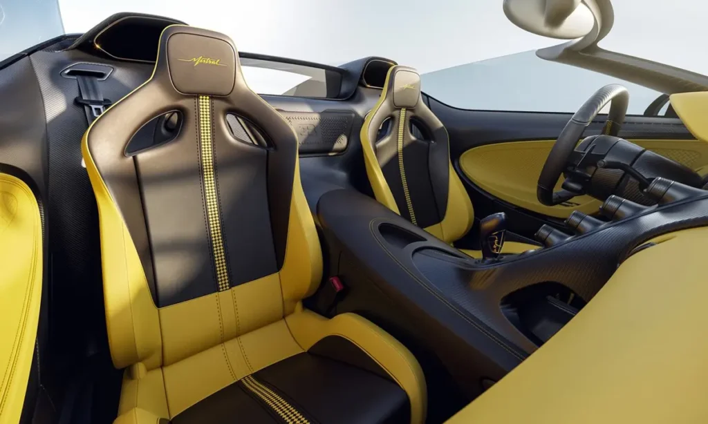 Most notably, the absence of a fixed roof creates a new visual profile that differentiates the Mistral from all earlier W16 models. This open-air design transforms the hypercar’s personality, emphasising elegance and emotion over strict aerodynamics while still delivering extraordinary stability. The result is a masterpiece of sculptural engineering—intense, purposeful and unmistakably Bugatti.