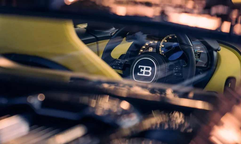 The centre console houses a refined control interface with milled-aluminum switches inspired by mechanical watchmaking. A custom instrument cluster displays digital readouts framed by physical craftsmanship. Bugatti also offers extensive personalization through its Sur Mesure program, allowing owners to commission bespoke colour schemes, materials and insignias.