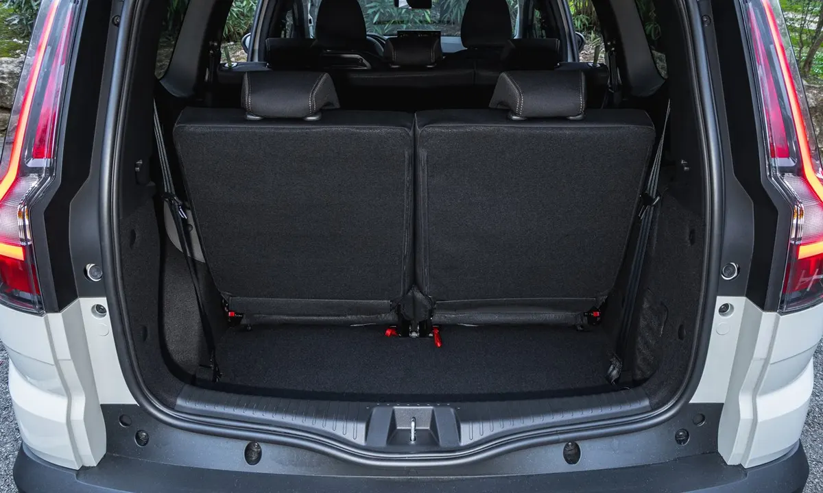 The first row is spacious and well-designed, with comfortable seating, adequate elbow room and excellent all-round visibility through the Jogger’s generously sized glass surfaces. The second row is where the Jogger makes its most compelling case for families — three full-width seats with sufficient legroom for adult occupants of average height, genuine headroom that is enhanced rather than compromised by the rising roofline, large side windows that provide both natural light and engaging views for younger occupants, and a seat-tumble mechanism operated by fabric pulls that allows rapid and straightforward access to the third row. The roofline’s rising trajectory means that middle-row occupants sit slightly higher than those in front — a configuration that provides a more panoramic forward view and creates a greater sense of cabin space than a level or declining roofline would achieve.
