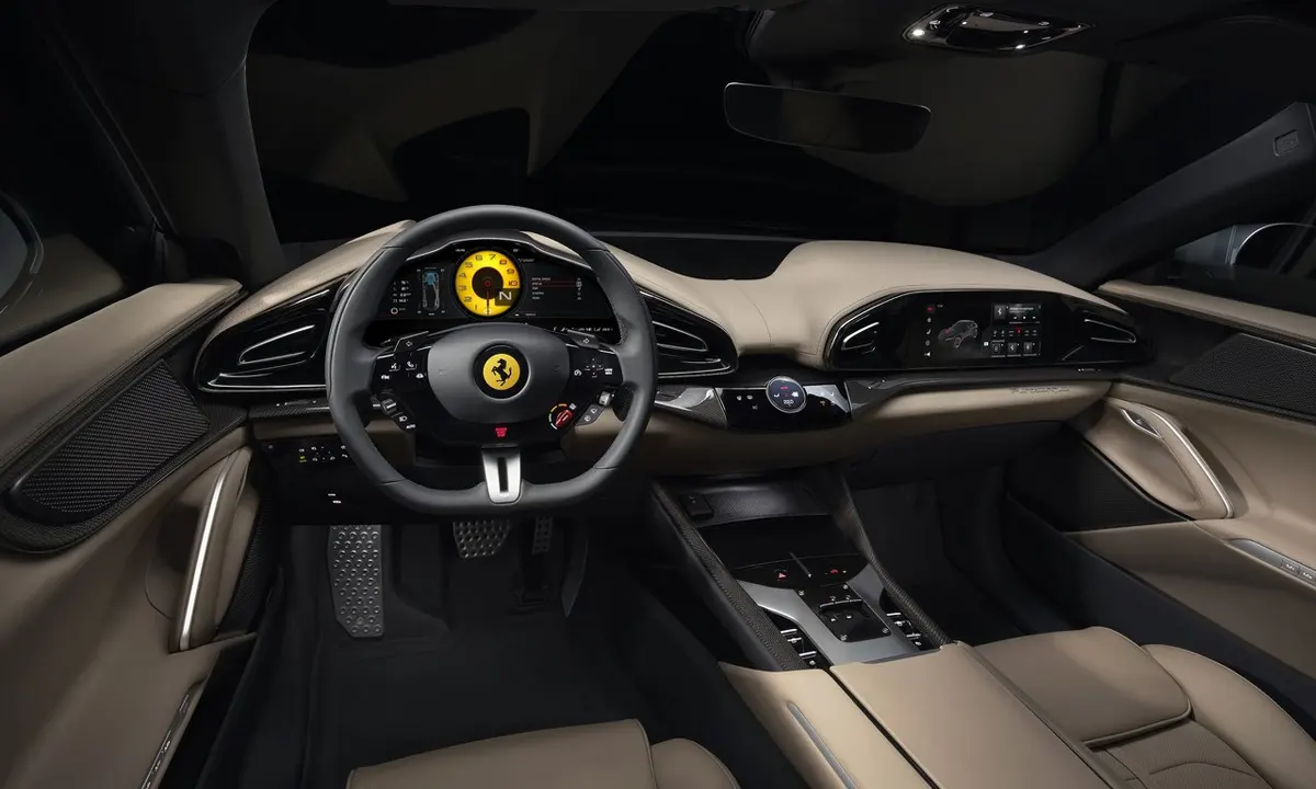 The interior of the Purosangue reflects Ferrari’s commitment to combining performance with luxury, creating an environment that is both sophisticated and engaging.