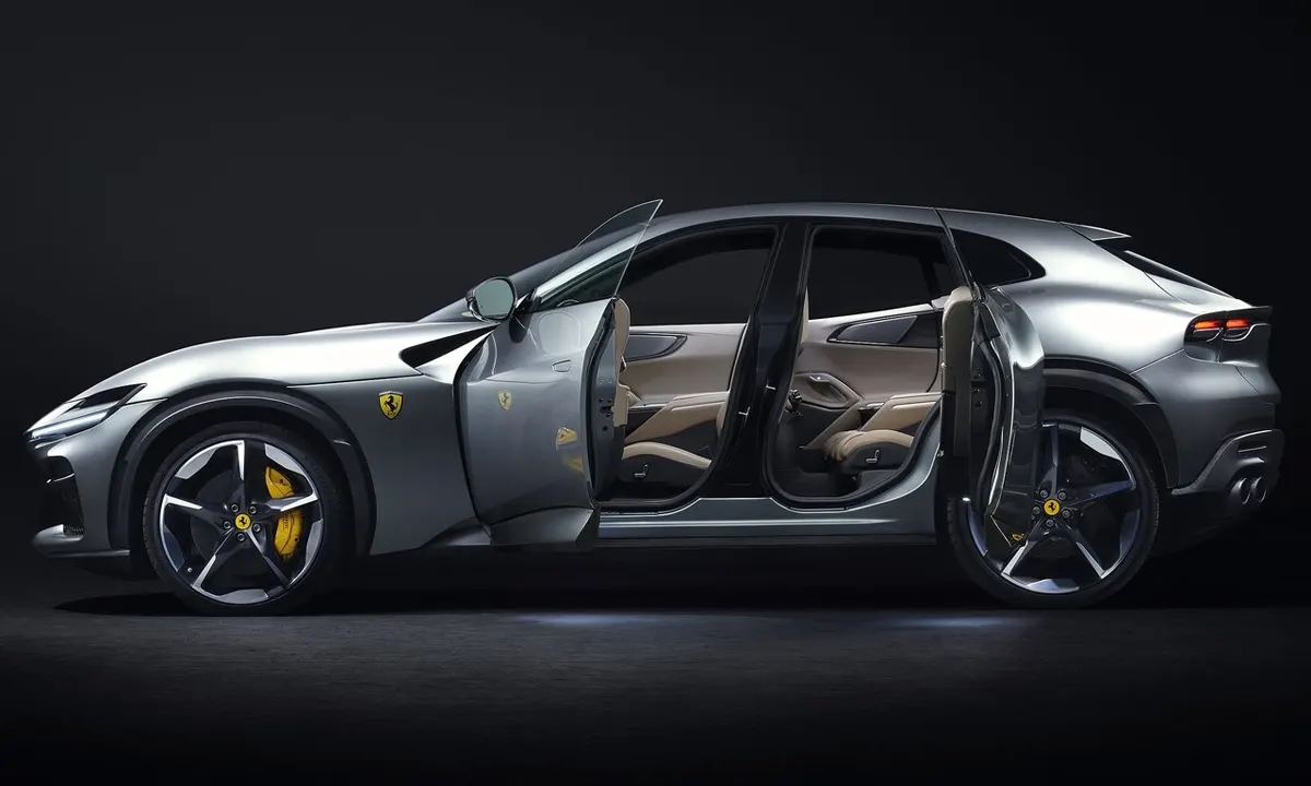 The rear-hinged coach doors — what journalists and enthusiasts have taken to calling suicide doors, in the tradition inherited from Rolls-Royce and Lincoln — are among the most distinctive and most visually dramatic elements of the Purosangue’s exterior identity. They are not merely stylistically adventurous. They are structurally significant: by eliminating the B-pillar that separates the front and rear door apertures in conventional four-door designs, they create an opening of exceptional width and accessibility that transforms the experience of entering the rear cabin. The doors can close electrically rather than requiring a physical pull from the occupant, adding a quality of interaction to the boarding process that reinforces the car’s premium positioning at every point of contact. In a world of SUV rivals whose rear door access is a conventional and forgettable functional exercise, the Purosangue’s coach doors transform the moment of arrival into a genuinely theatrical event.