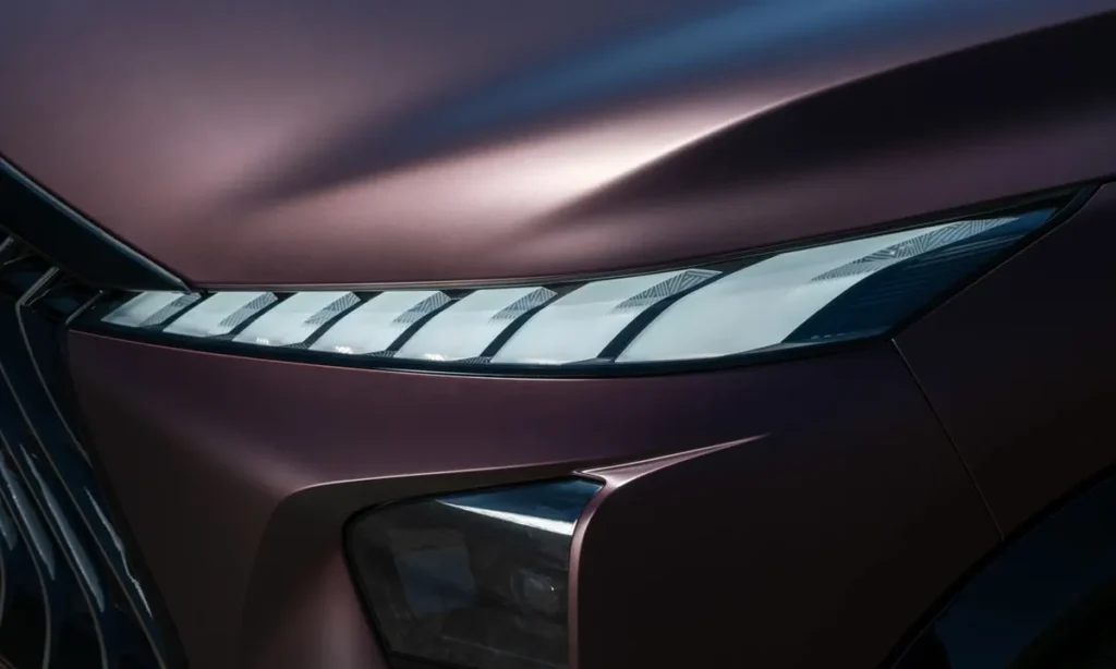 At the front, the concept reveals a fresh interpretation of Infiniti’s signature front fascia. The grille area—if destined for an electrified model—appears closed or partially closed, suggesting optimized airflow management. The lighting signature incorporates a modern multi-layered approach, using slim LED modules that taper toward the edges of the vehicle, giving the QX65 Monograph a sharp, expressive and contemporary gaze. Aerodynamic sculpting around the front corners reduces drag and channels air along the body, reinforcing the marriage of engineering and design.