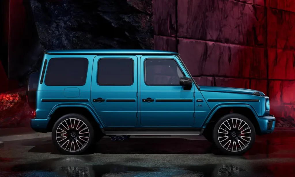 The body retains its robust industrial simplicity—flat doors, exposed hinges and prominent fender flares—but is subtly refined to improve aerodynamics and reduce wind noise. The side-exit exhaust pipes located just ahead of the rear wheels remain one of the G63’s most distinctive design traits, producing an acoustic symphony that enhances the driving experience while also providing a visual cue of its AMG identity.