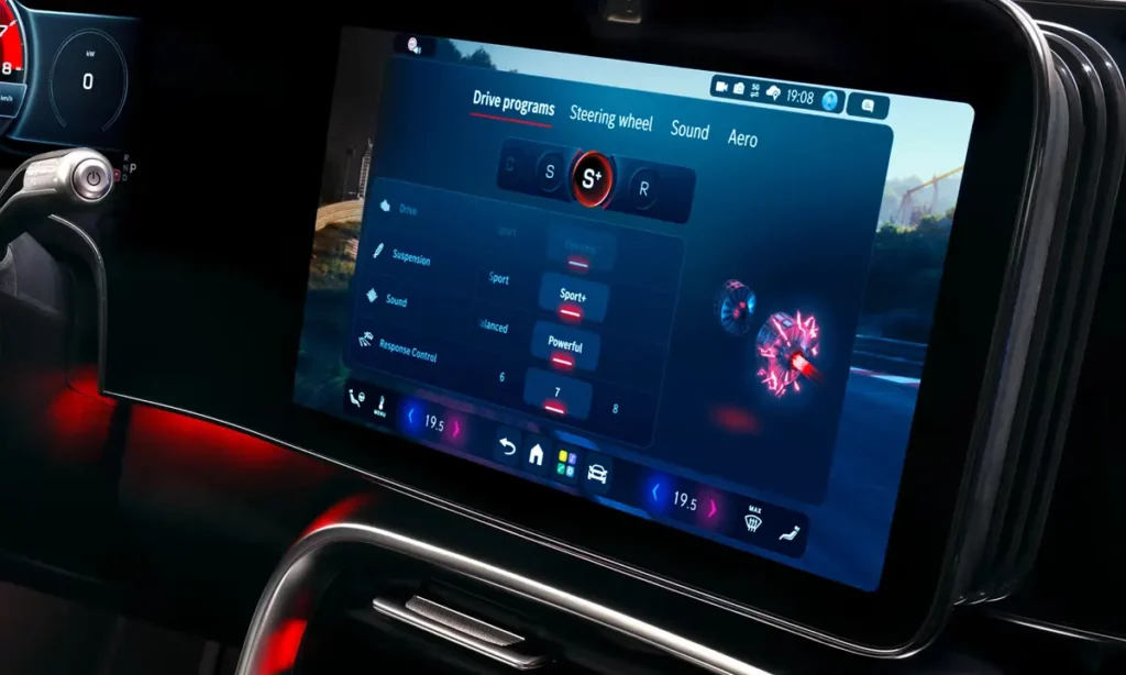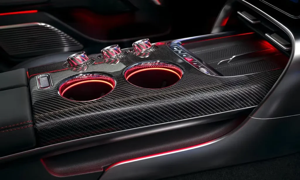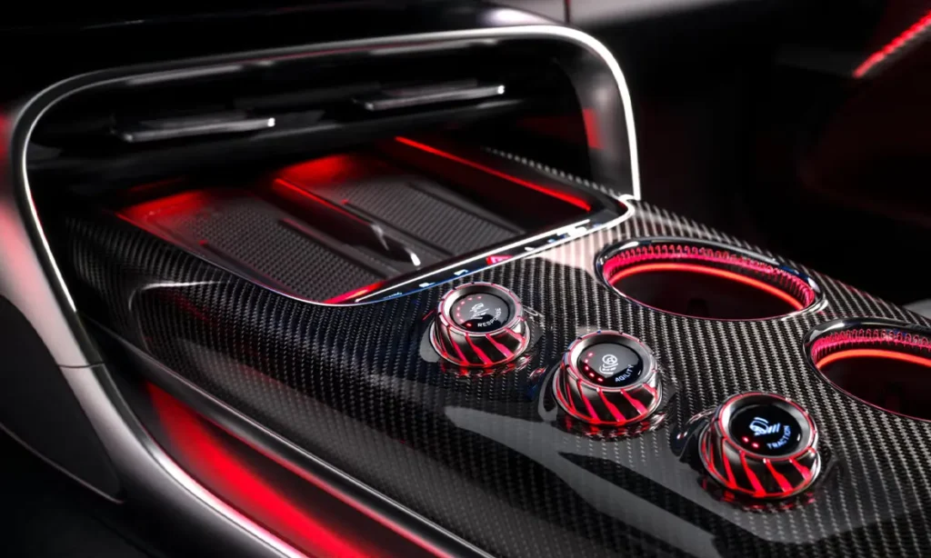 One of the most distinctive aspects of the cabin is its wide center console. Inspired by the design of jet aircraft cockpits, the console rises dramatically between the driver and passenger seats, creating a sense of separation and exclusivity. Integrated touch-sensitive buttons allow drivers to adjust key performance settings quickly without distraction.