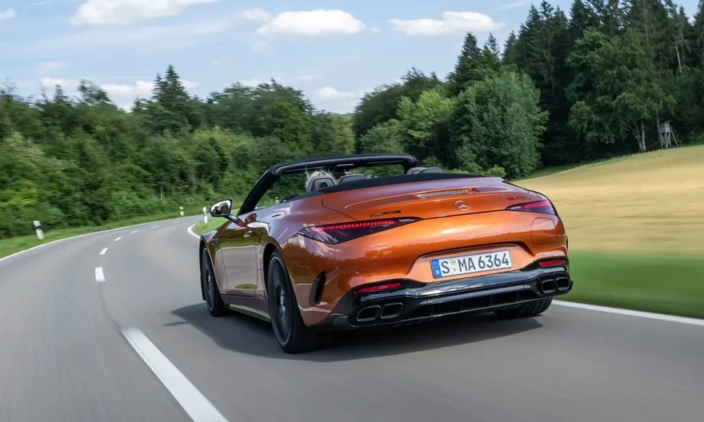 Mercedes has achieved a drag coefficient of 0.31, remarkable for a performance convertible. The use of lightweight aluminum and magnesium throughout the body improves stiffness and balance, allowing the car to feel both rigid and responsive.