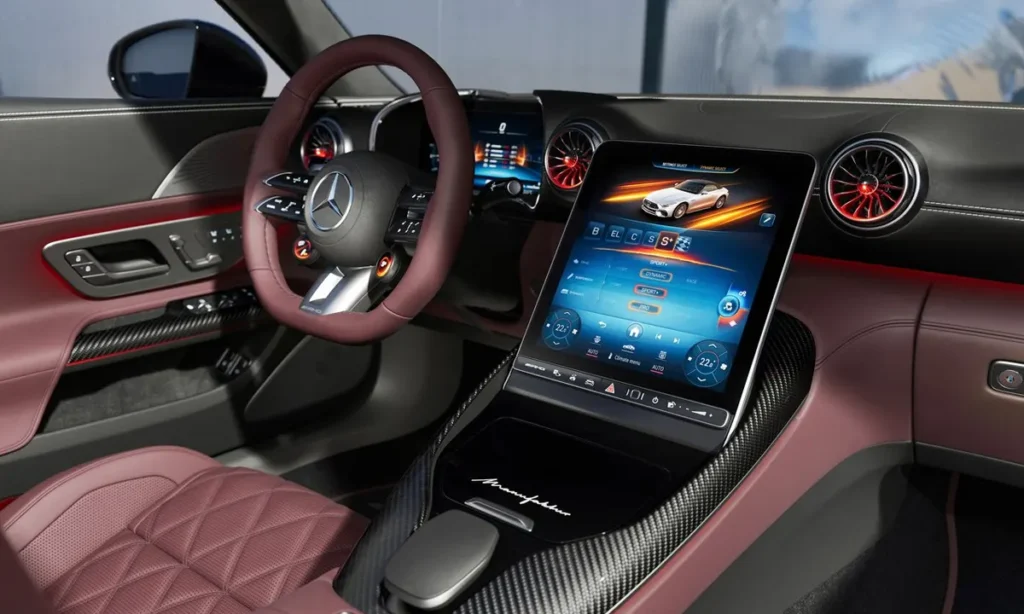 - 11.9-inch central touchscreen (MBUX) with tilt adjustment to reduce glare when the top is down.