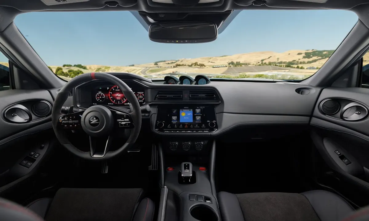Inside the Nissan Z NISMO, the interior philosophy is one of deliberate minimalism combined with targeted luxury — a combination that creates an environment that feels purposeful and focused without descending into the spartan discomfort of a dedicated competition vehicle. The cabin remains true to the Z’s two-seat, driver-focused architecture, with every significant visual and tactile detail either unchanged from the standard Z in the interest of proven usability or specifically upgraded for the NISMO application in the interest of driving precision and engagement.