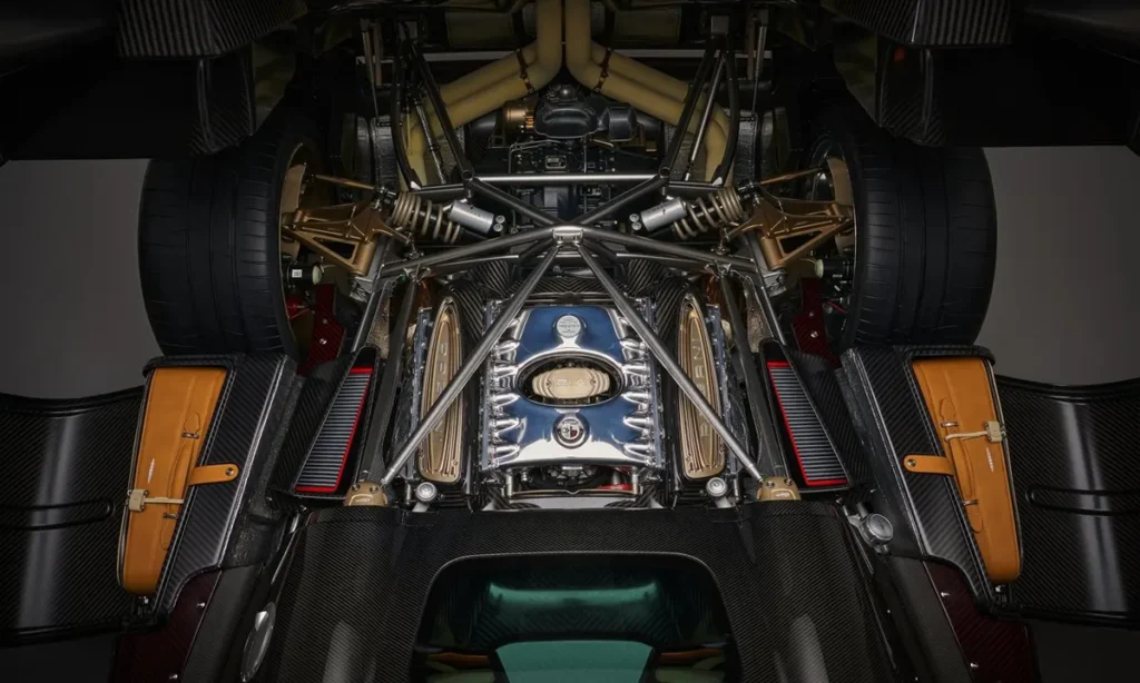 Aerodynamic performance is carefully controlled through active aero elements integrated into the bodywork. Subtle winglets, air passages and diffusers manage airflow without resorting to oversized wings. Pagani’s philosophy favors invisible aerodynamic solutions that preserve the purity of design while achieving exceptional downforce and cooling efficiency.