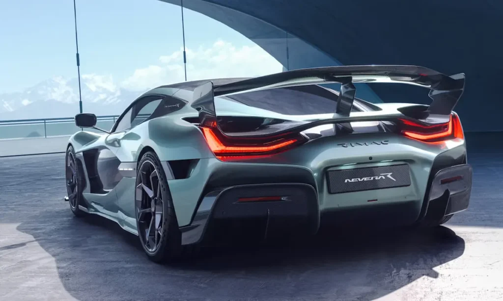 At the rear, the Nevera incorporates an active wing, a large diffuser and slim LED taillights that emphasize width and precision. The rear end functions as a major aerodynamic and cooling hub, ensuring that the electric powertrain remains thermally stable even under maximum load. Every curve and contour plays a role in shaping the Nevera’s aerodynamic authority.