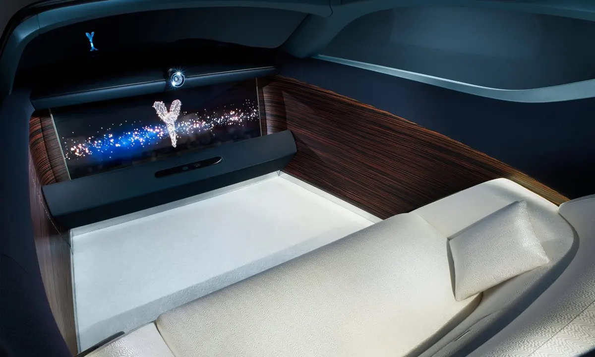 The interior of the Rolls-Royce 103EX is perhaps its most emotionally affecting dimension — a space that, more than any exterior design element or technological system, communicates what the brand believes luxury should truly feel like at its deepest and most personal level. Because the 103EX is designed for fully autonomous operation, the conventional architecture of an automotive interior — steering wheel, instrument cluster, pedals, driver-oriented dashboard — is entirely absent, replaced by a cabin environment conceived from first principles as a private sanctuary for its single important occupant.