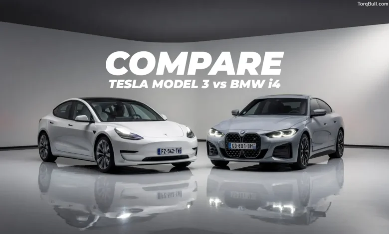 Tesla Model 3 vs BMW i4: The Tesla Model 3 versus BMW i4 comparison is the one that best defines the fundamental split in the premium electric sedan market — not a comparison of similar vehicles at similar prices, but a comparison of two philosophies about what a premium electric sedan should be and what its buyer should value most. The Model 3 is the efficiency, performance and technology argument: more range, faster acceleration, lower price, a charging network that genuinely works and over-the-air software that adds features continuously across the ownership period. The BMW i4 is the luxury, refinement and driving dynamics argument: genuine leather from the base trim, a curved display that blends digital instrumentation with conventional luxury design, physical climate controls, wireless Apple CarPlay and a chassis tuned by the engineers responsible for the benchmark 3 Series — a vehicle that Autoblog’s 2026 Performance trim comparison describes as offering “better or equal quality across key categories for less money” in the Model 3 Performance versus i4 eDrive40 configuration. This guide compares both vehicles completely and delivers the verdict for every buyer profile.