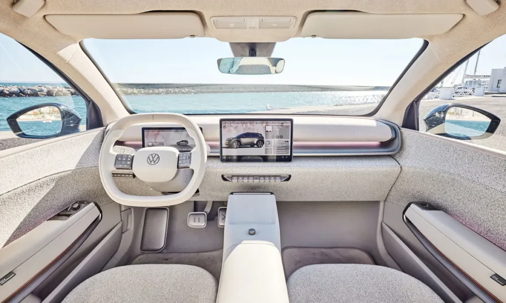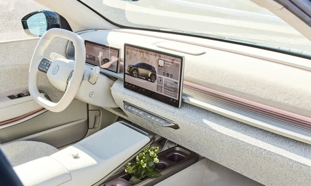 The interior of the 2025 Volkswagen ID. CROSS Concept reflects a dramatic shift in interior philosophy, centered around openness, digital interaction and sustainability. The MEB platform’s flat floor and compact drivetrain components allow designers to reimagine cabin dimensions, resulting in remarkable spaciousness for a compact crossover. The cabin offers a lounge-like atmosphere, enhancing comfort, flexibility and visual harmony.
