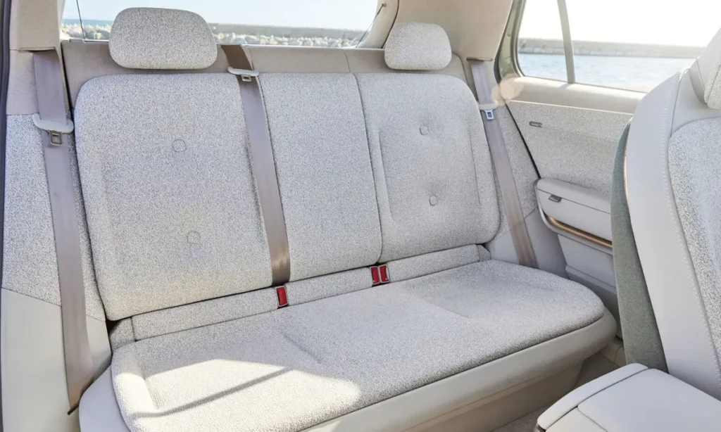 The side profile is defined by a strong character line, flowing roof arch and sculpted fenders that blend efficiency with dynamic presence. The coupe-style roof gently slopes into the rear deck, offering a sporty, modern outline without compromising cabin space. Flush door handles, aerodynamic wheel designs and minimized panel gaps contribute to drag reduction and enhance the concept’s futuristic aesthetic.